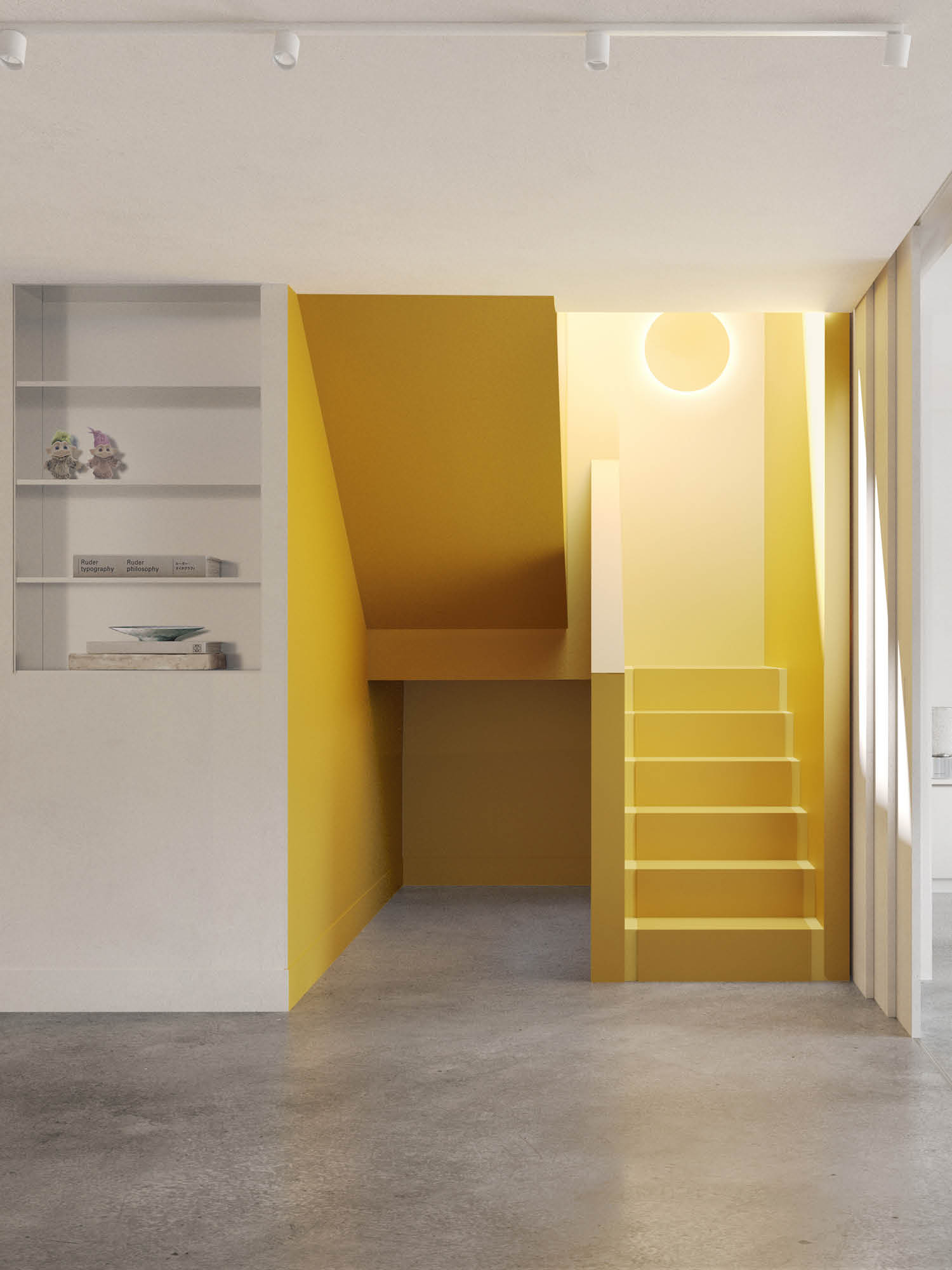 A second key aspect of our approach is transforming the house into a series of curated installations with each element contributing to a peaceful environment. Whether it's turning the staircase yellow or directing key views within the home layout, these installations breathe life into the dwelling. The devil is in the detail, where each curated piece comes alive.